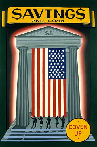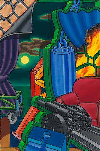 Roger Brown, Government Smokescreen, 1990, oil on canvas, 72" x 48" Courtesy of the Roger Brown Study Collection, the School of the Art Institute of Chicago
