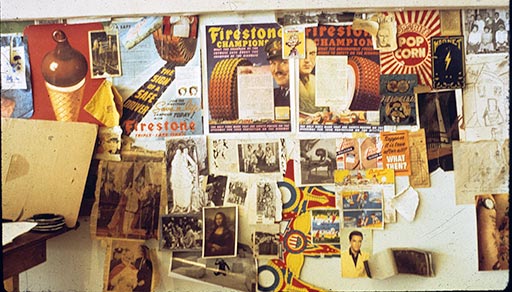 Art Green's studio wall with source imagery, 1968. Courtesy of Art Green
