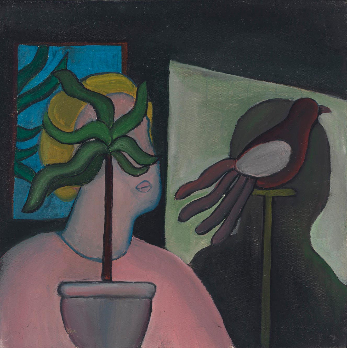 Philip Hanson, Shadow Series: Emerging Lady, 1968, oil on canvas, 12.5" x 12.5." Courtesy of the artist and Corbett vs. Dempsey