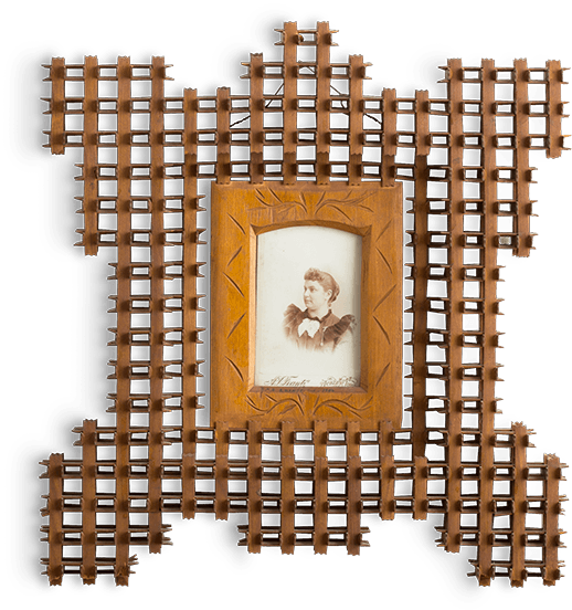 Artists unknown, tramp art type frame with portrait photograph From the Roger Brown Study Collection, the School of the Art Institute of Chicago. Photograph by Joshua Arends