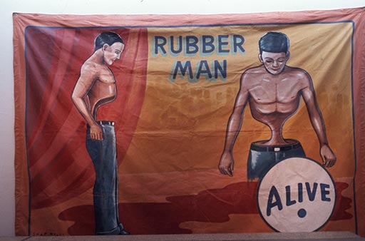 Snap Wyatt "Rubber Man" freak show banner from Whitney Halstead's slide collection. John M. Flaxman Library & Special Collections, the School of the Art Institute of Chicago.