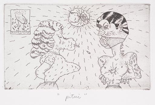 Jim Nutt, Pitui, 1967-68, etching, Edition of 10, 3" x 5" Courtesy of the artist and Corbett vs. Dempsey