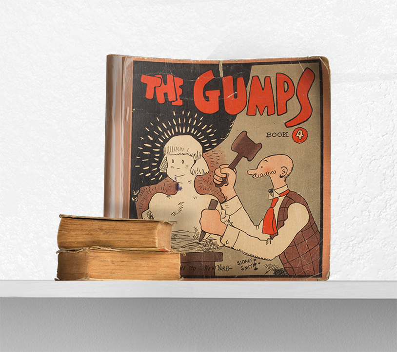 Sidney Smith, The Gumps book cover and books From the Roger Brown Study Collection, the School of the Art Institute of Chicago. Photograph by Joshua Arends