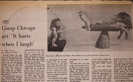 Chicago Tribune, 1972. In the aftermath of the MCA's "Chicago Imagist Art" exhibition, Jane Allen and Derek Guthrie criticize Chicago Imagism, with a focus on its campy humor.