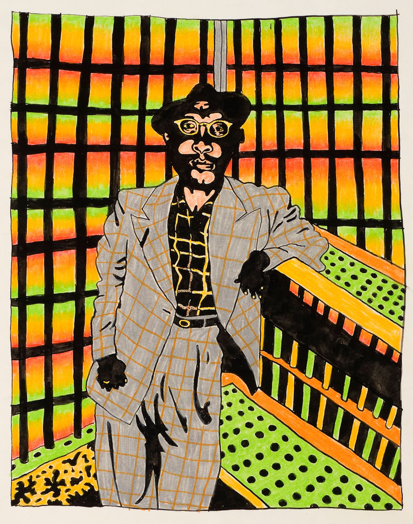 Karl Wirsum, Jazz Man, 1965, ink and crayon on paper, 13" x 11" Courtesy of the artist and Corbett vs. Dempsey, Chicago