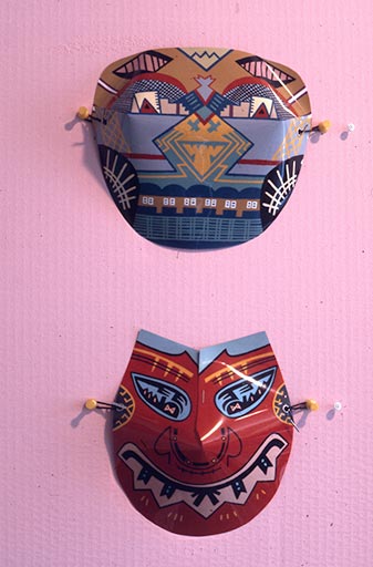 Karl Wirsum masks, c. 1980s Photograph by Christina Ramberg courtesy of the Estate of the Artist and Corbett vs. Dempsey