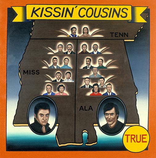 Roger Brown, Kissin' Cousins, 1990, oil on canvas, 72" x 72" Courtesy of the Roger Brown Study Collection, the School of the Art Institute of Chicago