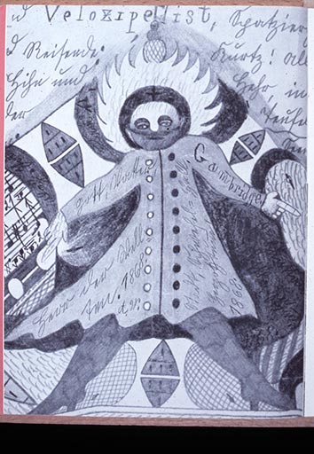 Artist unknown, bottle cap "snack man" From the Roger Brown Study Collection, the School of the Art Institute of Chicago. Photograph by Joshua Arends