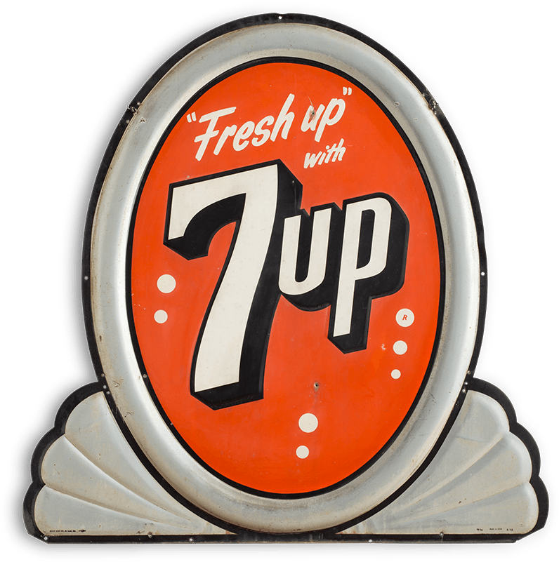 Stout Sign Company, 7-Up advertisement. One of the first items Roger Brown acquired in his collection of signage. From the Roger Brown Study Collection, the School of the Art Institute of Chicago. Photograph by Joshua Arends
