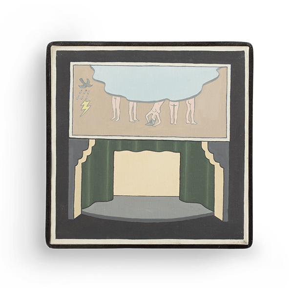 Roger Brown, Untitled (theatre interior, rain/cloud/nudes scene), 1967, oil on canvas, 12" x 12" From the Roger Brown Study Collection, the School of the Art Institute of Chicago. Photograph by Joshua Arends
