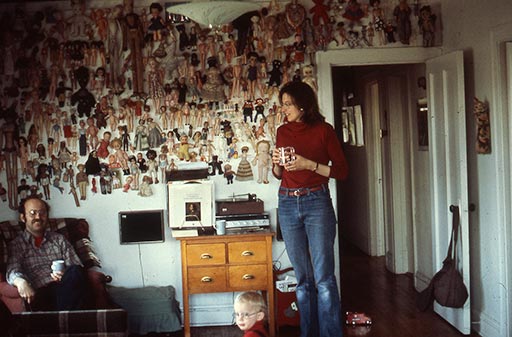 Christina Ramberg, Philip Hanson, and Alex Hanson at home with doll collection. Photographs of Chicago Imagist Artists from 1977 by Sandra Jorgensen, Elmhurst College Art Collection, Elmhurst College, Elmhurst, IL